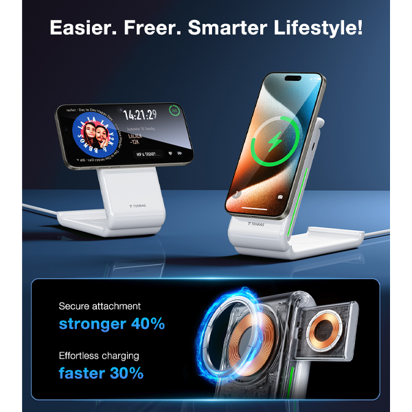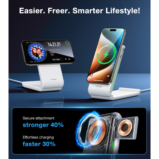توراس شاحن لاسلكي 3 في 1 لون أبيض